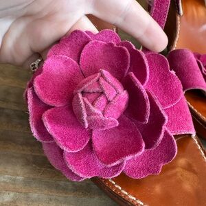 Coach Ashlyn Fushia Suede Leather Wedged Flower Sandals Size 8 Italy
