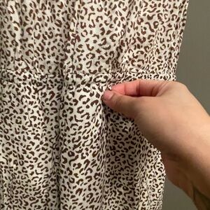Stylish leopard print maxi dress. Strapless design. Flowing silhouette. Perfect for any occasion.