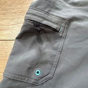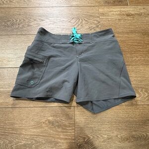 Athleta Clearwater board shorts, gray with teal accents