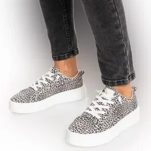 Step out in style with these chic leopard print sneakers. Perfect for adding a wild touch to any outfit. Memory Foam Padded Insoles With Print & Terry Lining For Added Comfort. Knotted Elasticized Lace Closure.