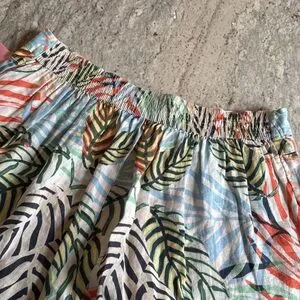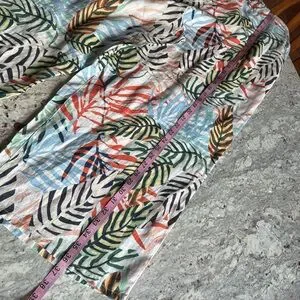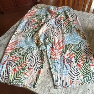 Stylish pants with a multicolor leaf design. Perfect for a bold statement.