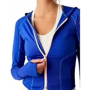 NEW Free People Movement Playin For Keeps Zip Hoodie Layer Sapphire Skies Combo