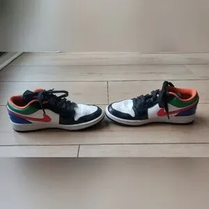 These Jordan sneakers showcase a striking multi-colored color scheme, embodying a classic and sporty style. Crafted with premium materials, they offer comfort, durability, and style making them a perfect choice for everyday wear.