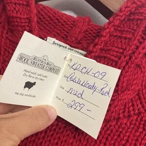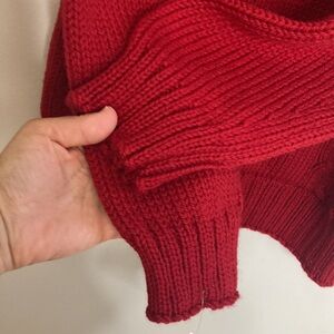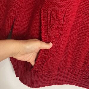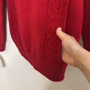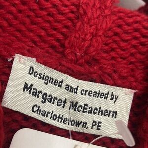 New Handmade Sweater Womens Medium Red Merino Wool Cable Knit Hoodie PEI Canada
