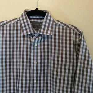Calibrate Brown & Blue Trim Fit Dress Shirt