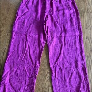 Athleta linen pants, flowy and comfortable. Elastic drawstring waist, side zipper pockets. Inseam measures 30”. Fuschia