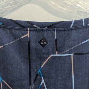 PRANA Sanna Jersey Dress M Dusky Blue Geometric Loose Fit Shift Style Cap Sleeve