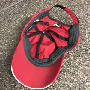 Velcro adjustable Nike Golf Maroon Garnet Burgundy hat with white logo.