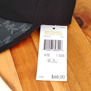 Michael kors baseball cap brand new never worn still with tags. the color is black with the signature Michael kors logo on brim of the hat, the brim is a leather material - this is a unisex hat and is adjustable it is lightweight durable and easy to wear - there's a few things in my closet that I think would match well with it take a peek I love to bundle!
