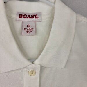 Keyword: Boast shirt, women's polo, sleeveless top, athletic wear, white polo, cotton blend, sport shirt, medium size, breathable fabric, Peru made, casual wear, sportswear, Boast brand, summer top, golf, tennis, pickleball, preppy, clean cut, country club, Christmas Gift for Her