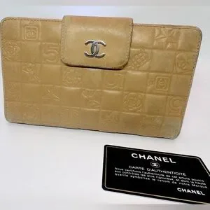 authentic chanel wallet rare chanel long wallet vintage chanel precious symbols chanel camel leather chanel bifold wallet chanel kiss lock chanel collectible wallet y2k chanel chanel 2000s wallet chanel number 5 embossed chanel camellia wallet chanel cc logo vintage chanel accessories