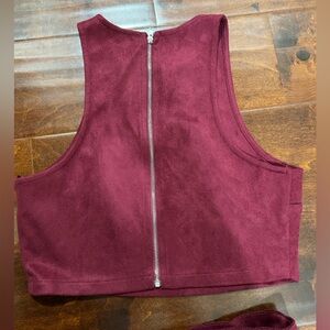Brand new without tags. Size small. Matching skirt set. Amazing faux suede details. Buttons are working buttons. Pockets on both side on skirt. Belted details. Amazing to pair this with your favorite pair of boots. Last set for sale.