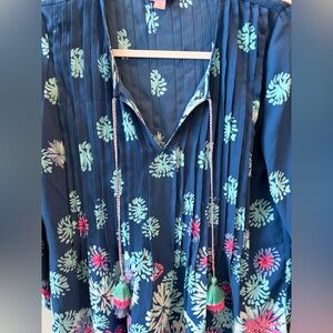 Lilly Pulitzer Marilina Pink and Blue Embellished 3/4 Sleeve Tunic Size XS sku20