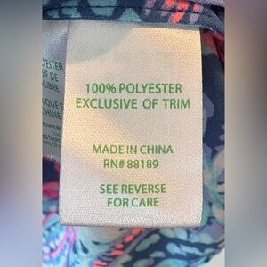 This relaxed tunic from Lilly Pulitzer features a vibrant blue marine-inspired pattern with white and pink embellishments. The 3/4 sleeve design, flowing silhouette, and lightweight fabric make it perfect for a summer vacation or resort wear.