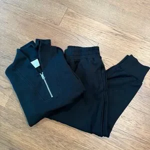 Varley Davidson Black Zip Sweatshirt and Slim Cuff Joggers Set, Medium