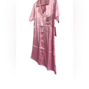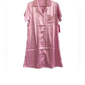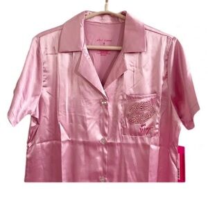 NWT Betsey Johnson Pink Satin Pajama Shirt with Rhinestone Lips - Size M