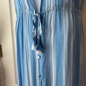 Stylish blue and white striped swim cover up.