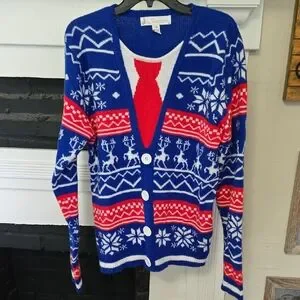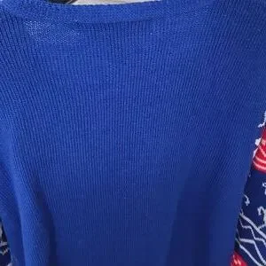 Great used condition. LG. Jolly Sweaters. 💯 Acrylic. Stay cozy and stylish with this festive blue and red Christmas sweater. Perfect for holiday gatherings and winter outings. chest 23 inches. length 28.25 inches. sleeve 27 inches. very soft and comfortable. B 10