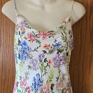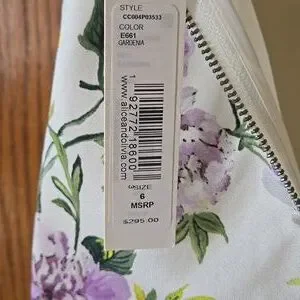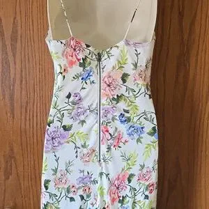 This stunning slip dress by Alice + Olivia features spaghetti straps, a beautiful Gardenia floral color palette with a stylish slit, adding a touch of elegance and movement to its midi length. zips up the back