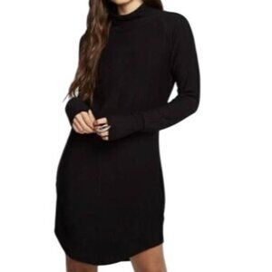 NWT Caser Black Long Sleeve Turtleneck Shirttail Hem Raglan Mini Sweater Dress