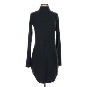 A versatile black sweater dress with a turtleneck and long sleeves, offering a sleek and polished look for casual or semi-formal settings.