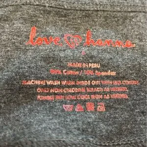 One pair if cropped charcoal grey women’s size large Hanna Andersson cotton leggings owned by me. In very good condition. Fabric content is 90% cotton, 10% spandex. Made in Peru. Machine wash warm inside out. Tumble dry low.