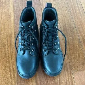 New Cole Haan Black Ankle Hiking Boots with Lace-Up Design 6