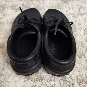 CROCS Islander Boat Black Leather Clog Duck Shoes Size 6 Women's Slide Lace Ups