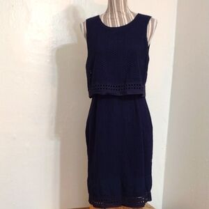 J Crew Navy Eyelet Sleeveless Dress Size 6