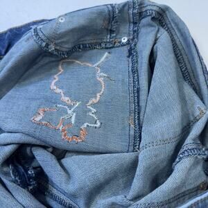 Sz 0.5 waist 28 inseam 24 crop rise 10. Selvedge Boho, Festival, Y2K, cottage, streetwear