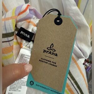 Prana NWT Unisex Stefany Sarong/Scarf Multicolor Striped, with Pom Pom Trim