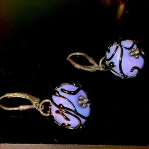 Beautiful lavender and black lamp work earrings vintage