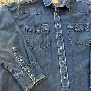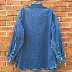 Medium blue wash with pearl snap buttons, front and back yoke