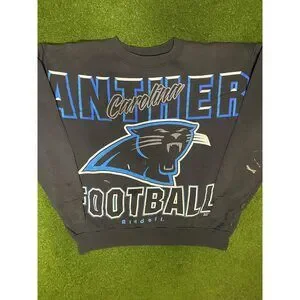 This vintage 1998 Carolina Panthers sweatshirt is a must-have for any true Panthers fan. Featuring a unique all-over print design that showcases the team's iconic logo and colors, this sweatshirt is sure to turn heads wherever you go. Made from a comfortable and durable cotton blend fabric, this sweatshirt is perfect for showing off your team pride during the colder months. Whether you're cheering on the Panthers from the stands or just running errands around town, this sweatshirt is the perfect addition to your game day wardrobe. Don't miss out on this rare and collectible piece of Panthers history!