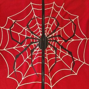 This eye-catching red and black hoodie features a striking spider web design on the front and sleeves, offering a bold and stylish look. The full front zipper closure adds convenience, making it a perfect choice for casual outings. Crafted for comfort and style, this sweatshirt is a standout piece in any wardrobe.