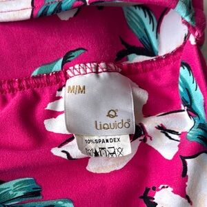 Vibrant pink sports bra with white floral pattern. Features green leaf accents. Stylish and comfortable. Medium but runs small but I remember it being very stretchy. In great condition only worn a few times.