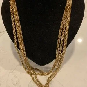 Enhance your style with this vintage 3 strand Monet gold necklace. Perfect for any occasion, this set adds a touch of sophistication to your look.❣️
