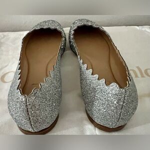 Chloe Scalloped Ballerina, Metallic, Silver Gray, Leather, made in Italy. EUR Fit 39 (A European size 39 is typically equivalent to a US women's size 8.5. Some sources may list it as equivalent to a US size 8.5 to 9)