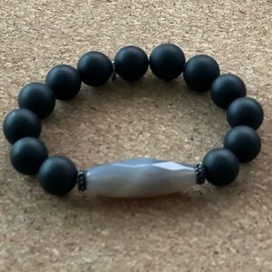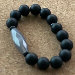 Discover the refined elegance of the Marlyn Schiff bracelet, featuring matte agate black beads and a sleek gray centerpiece. This minimalist design offers a contemporary touch, perfect for elevating any ensemble with its striking contrast and sophisticated style.