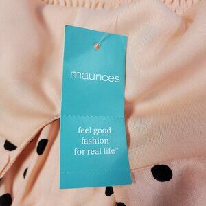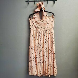 Maurices Maxi Sundress Women Size L Peach Black Polka Dot Halter Elastic Back