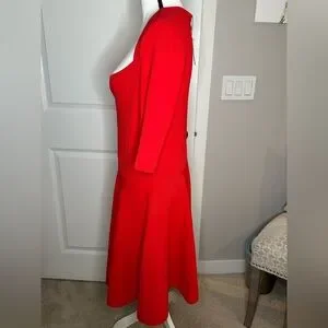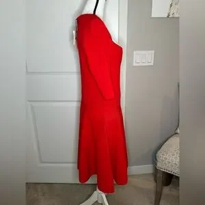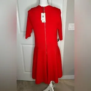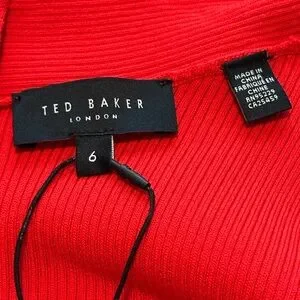 NWT Ted Baker London Milly Sweetheart Sweater Dress. Color: Red, size 6 (14 US). Fit and flare sweater dress with sweetheart neckline, exposed gold zipper in back. 63% viscose, 35% polyamide, 2% elastane. Dry clean or hand wash. Measures approximately- pit to pit- 18 1/2 inches, waist- 17 inches, hips- 27 inches, length- 41 inches.