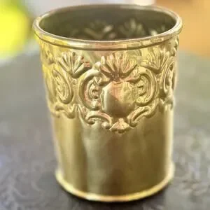Vintage Brass Etched Cup / Planter – Made in India