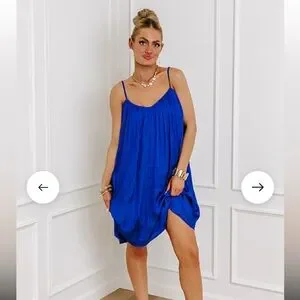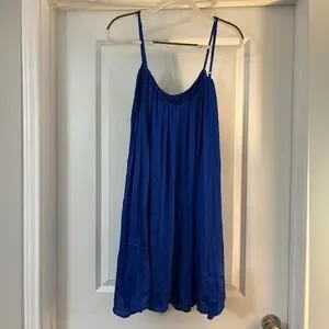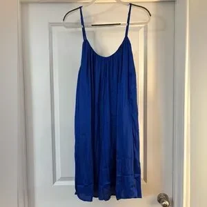 Blue Satin Knee Length Dress