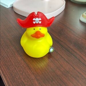Ahoy! This playful pirate rubber duck is perfect for bath time fun or for the dash in a Jeep Featuring a bright red pirate hat and a cheerful yellow body