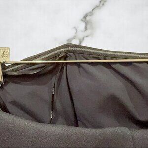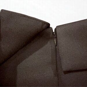 - Hook-and-eye and hidden zip at back