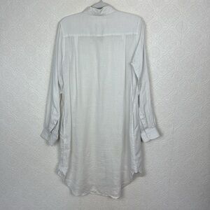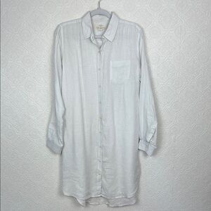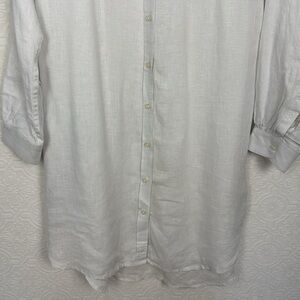 Trovata Birds of Paradise 100% Linen Tunic Dress Button Up Pockets White ShirtDress long sleeve beach
