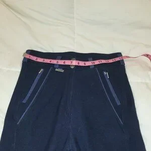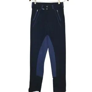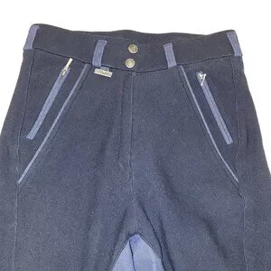 New without tags Dublin Navy breeches. Full seat of vegan suede for those of us who don't care for silicone. Stretchy material made of nylon, lycra and cotton. Old school with Velcro around the ankles. 2 snaps, zipper closure with two pockets. New and never been worn or ridden in. Women size 28