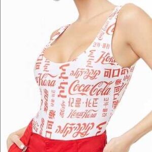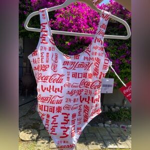 Forever 21 Coca Cola International Logo One Piece High Cut Swimsuit Size Small