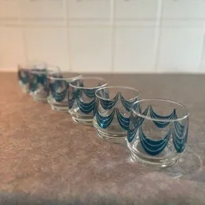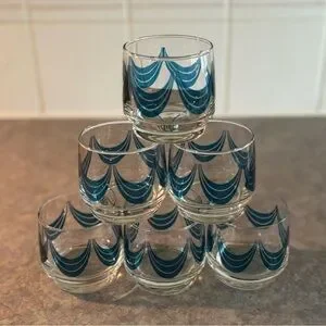 60/70's Lowball Glasses - 6 - Aqua Glassware - 60's Barcart Glasses - Barware