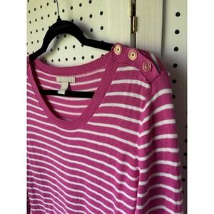 Banana Republic pink & white striped lightweight sweater with cute button detail on shoulders.